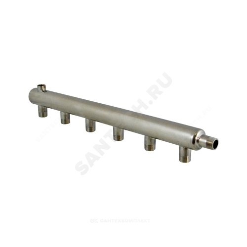 Коллектор латунь 1" ВР/НР на 2 вых 3/4" НР м/о 50мм с запорно-регулирующими клапанами Icma 87229PG06